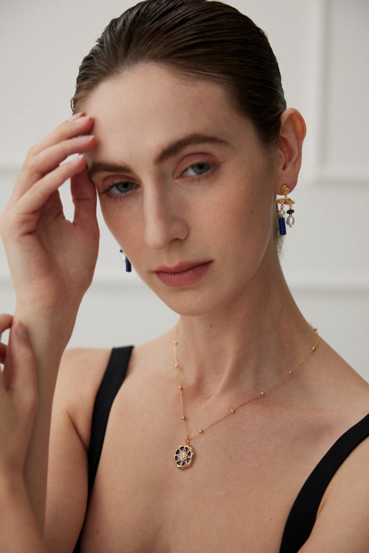18K Gold S925 Silver - Lapis Lazuli Ocean Muse Dangle Earrings