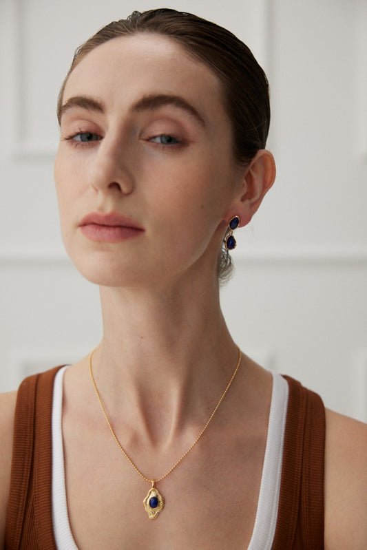 18K Gold S925 Silver - Lapis Lazuli Radiance Drop Earrings