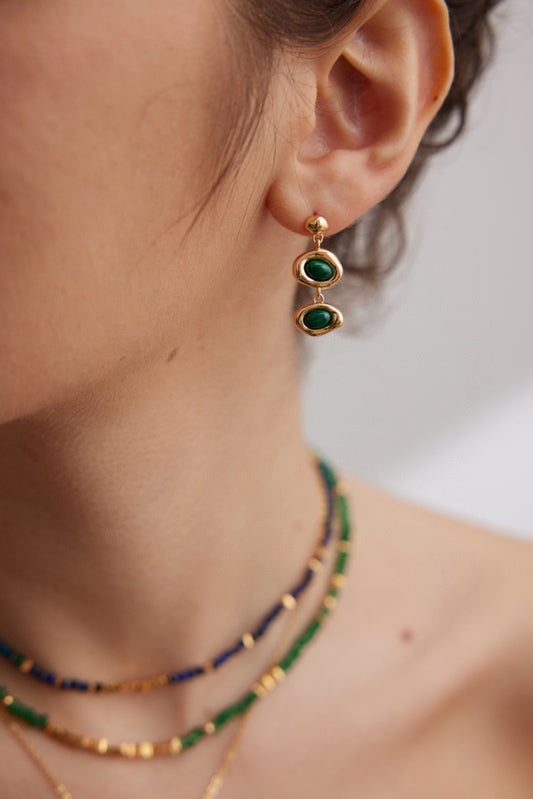 18K Gold S925 Silver - Ripple Drop Malachite Earrings
