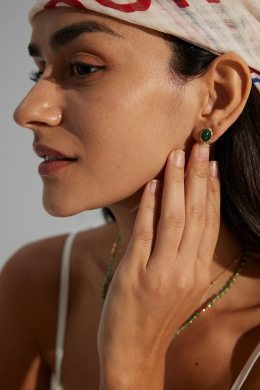 Our earrings are carefully handcrafted to either complement our necklaces or be worn on their own, adapting to any occasion and your unique mood. Made from fine silver, gold, natural pearls, and exquisite gemstones, each pair is designed to bring out your individuality with timeless elegance.