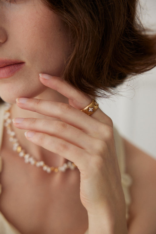 18K Gold S925 Silver - Elara Pearl Cuff Ring