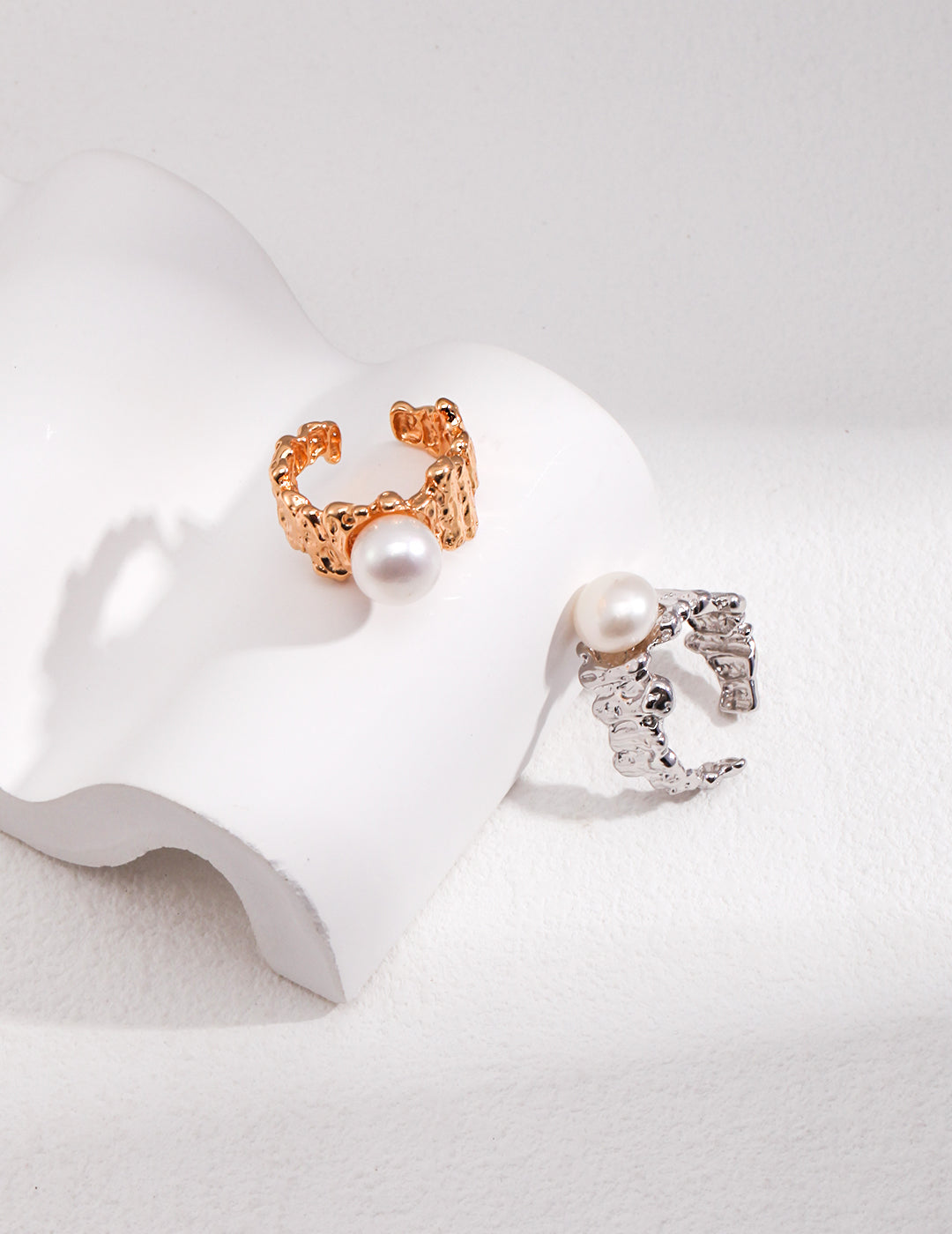 18K Gold S925 Silver - Aria Pearl Cuff Ring