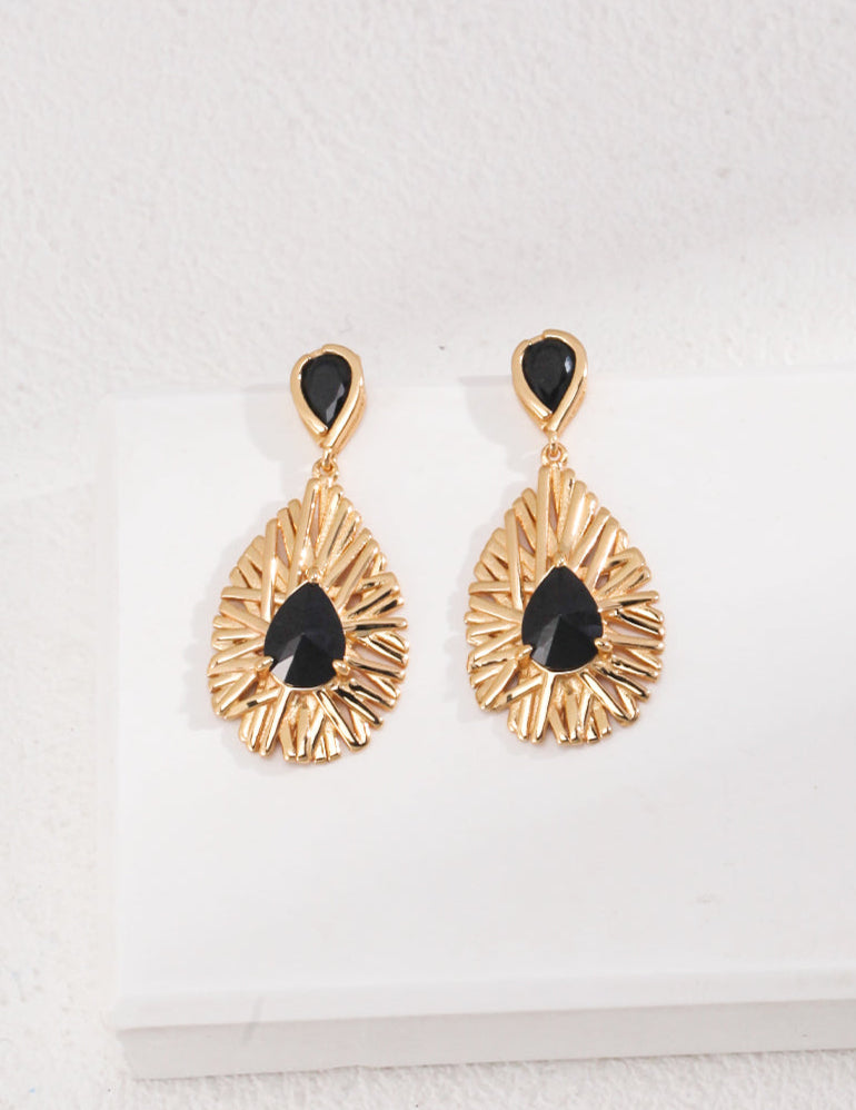 18K S925 Silver - Golden Black Onyx Sunburst Earrings